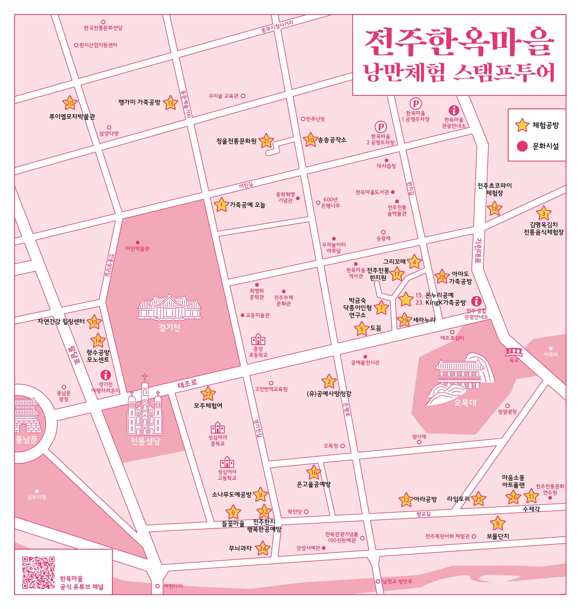 - 전주한옥마을에 여행을 오신 분들이라면 다양한 매력 가득한 체험공방들의 위치와 종류들도 알아가실 수 있으니 일석이조 아닐까요?