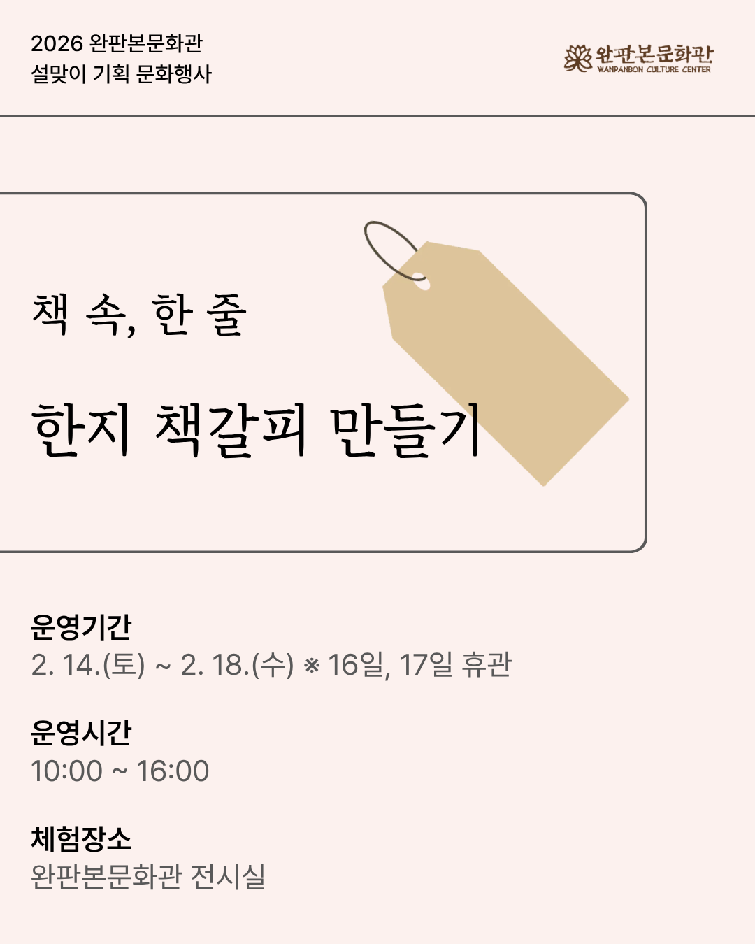 책 속 한 줄, 한지 책갈피 만들기 2월~2월 / 매주 ( 수 토 ~ 일 )완판본문화관